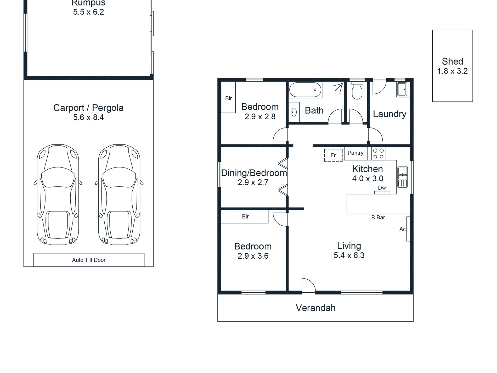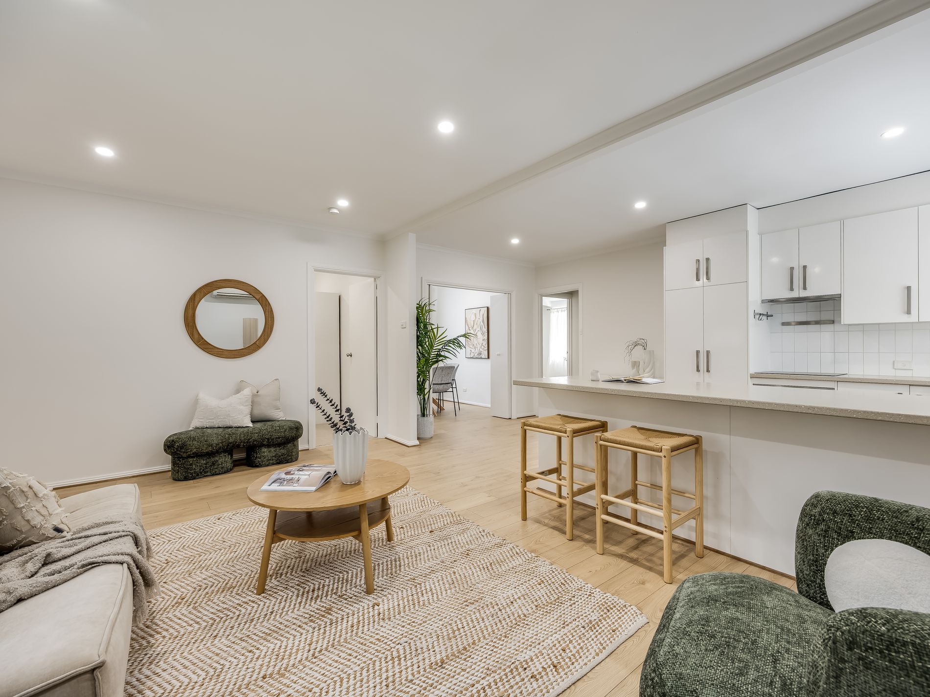 Each bedroom can map out a double bed, the primary suite hosting sliding robes, while a midway dining zone with wide, bi-folding door access allows it to flip from dinner parties to third bedroom duty.