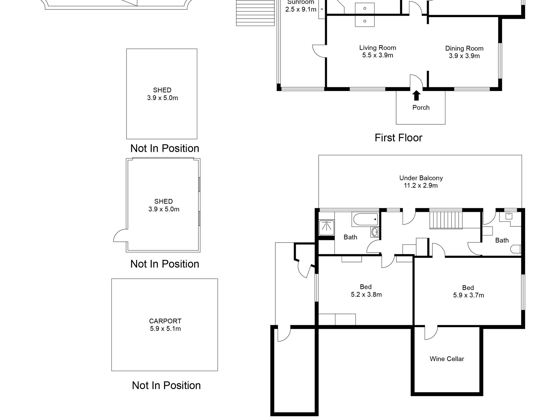 Completing the upstairs blueprint are two beautiful upstairs bedrooms that capture the best of those views, with the main bedroom adding on built-in robes, an ensuite, and adjacent study. Downstairs you’ll find two more Queen bedrooms, the first with charming character beams and garden views, and the second well-made built-in storage. There’s also a wine cellar, a large bathroom with family bath, the laundry, and access to the lawns that lie below the balcony, allowing you to supervise in style.