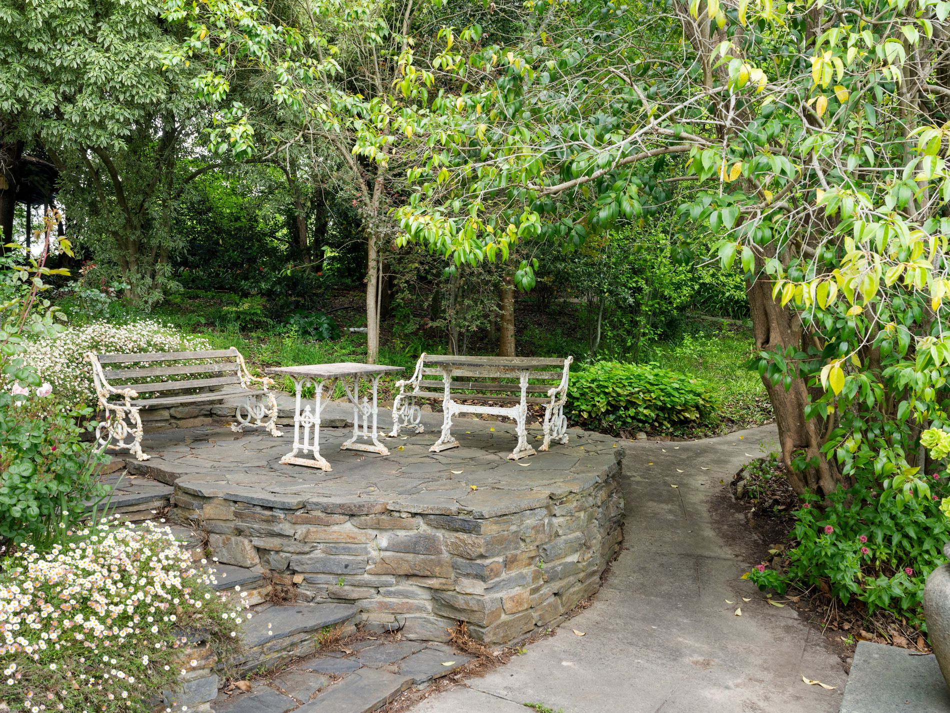 - Fully reticulated flowering gardens with ornamental plants and winding paths
