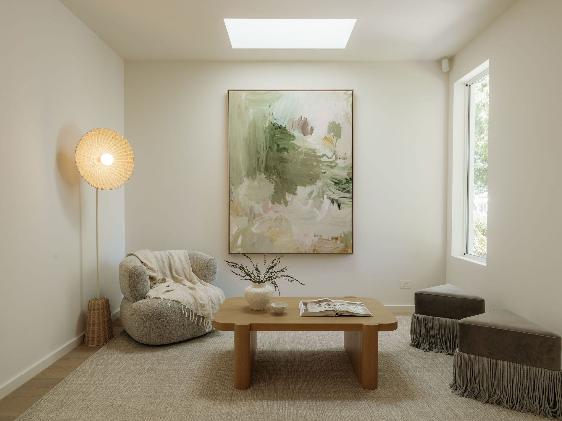 − Relaxing lounge retreat at entry with wide sky-window