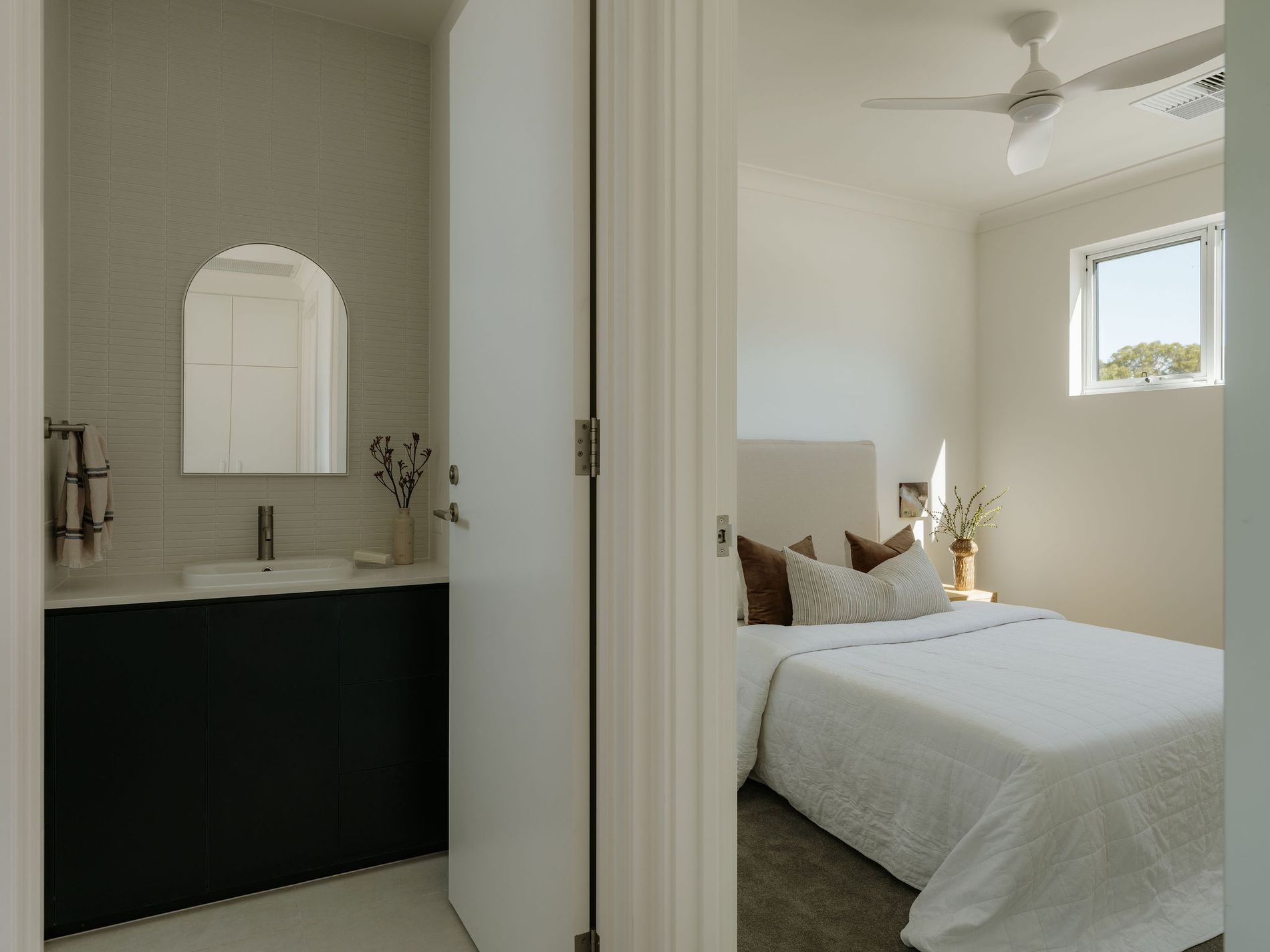 − Decadent master suite featuring picture windows, plush carpets, ceiling fan, generous WIR + luxurious ensuite with large sky-window, full-height tiling, walk-in shower and heated floors