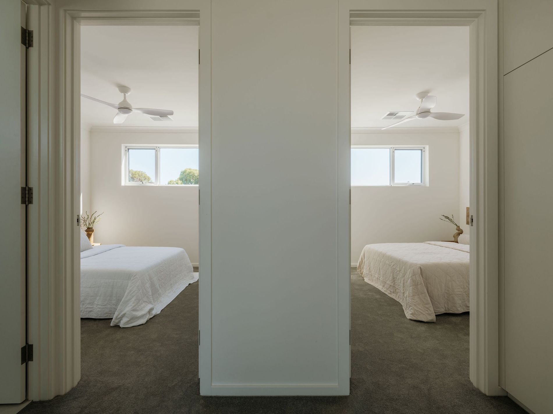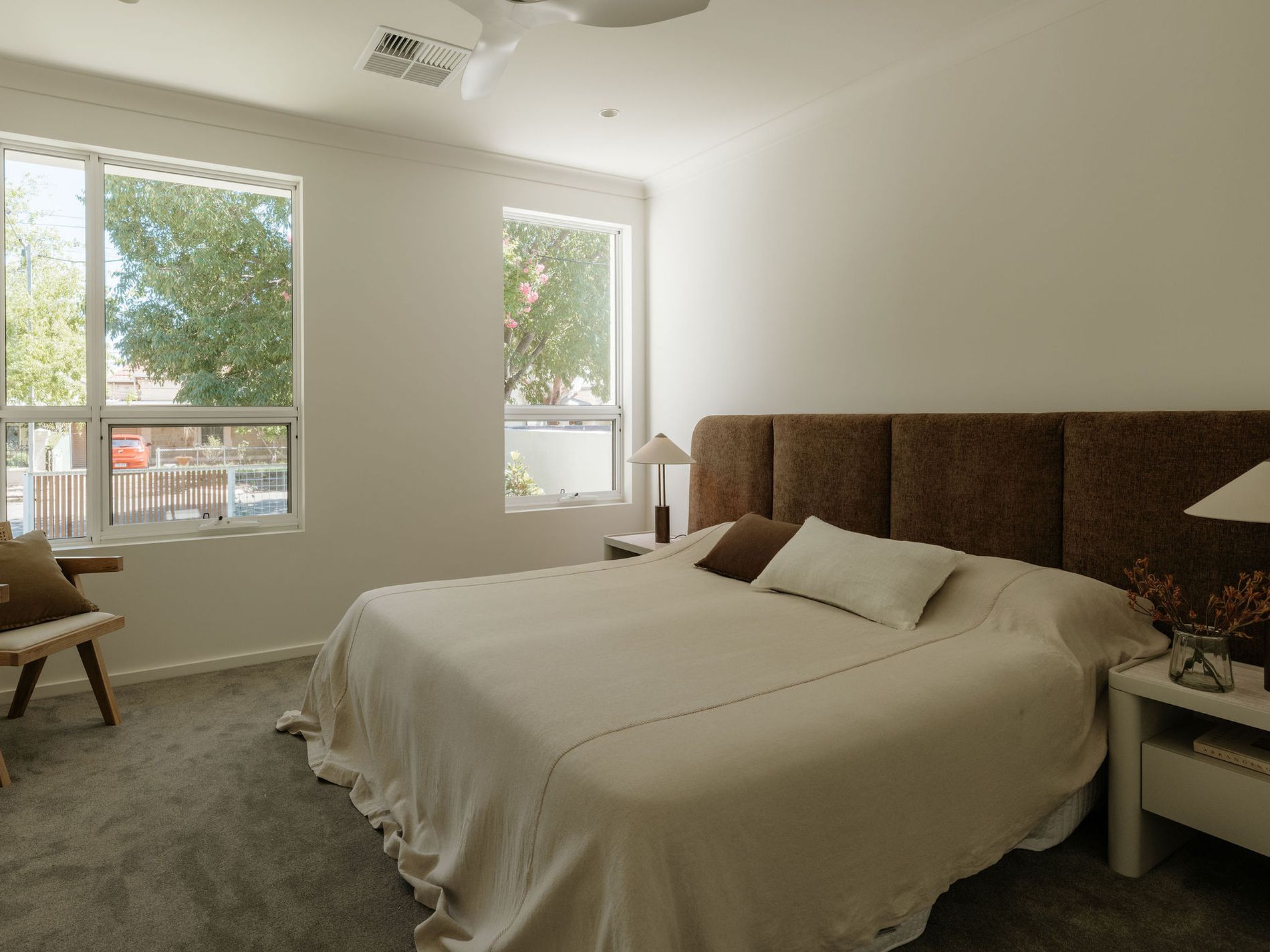 − Two bright + airy upstairs bedrooms, both enjoying plush carpets, ceilings fans + BIRs