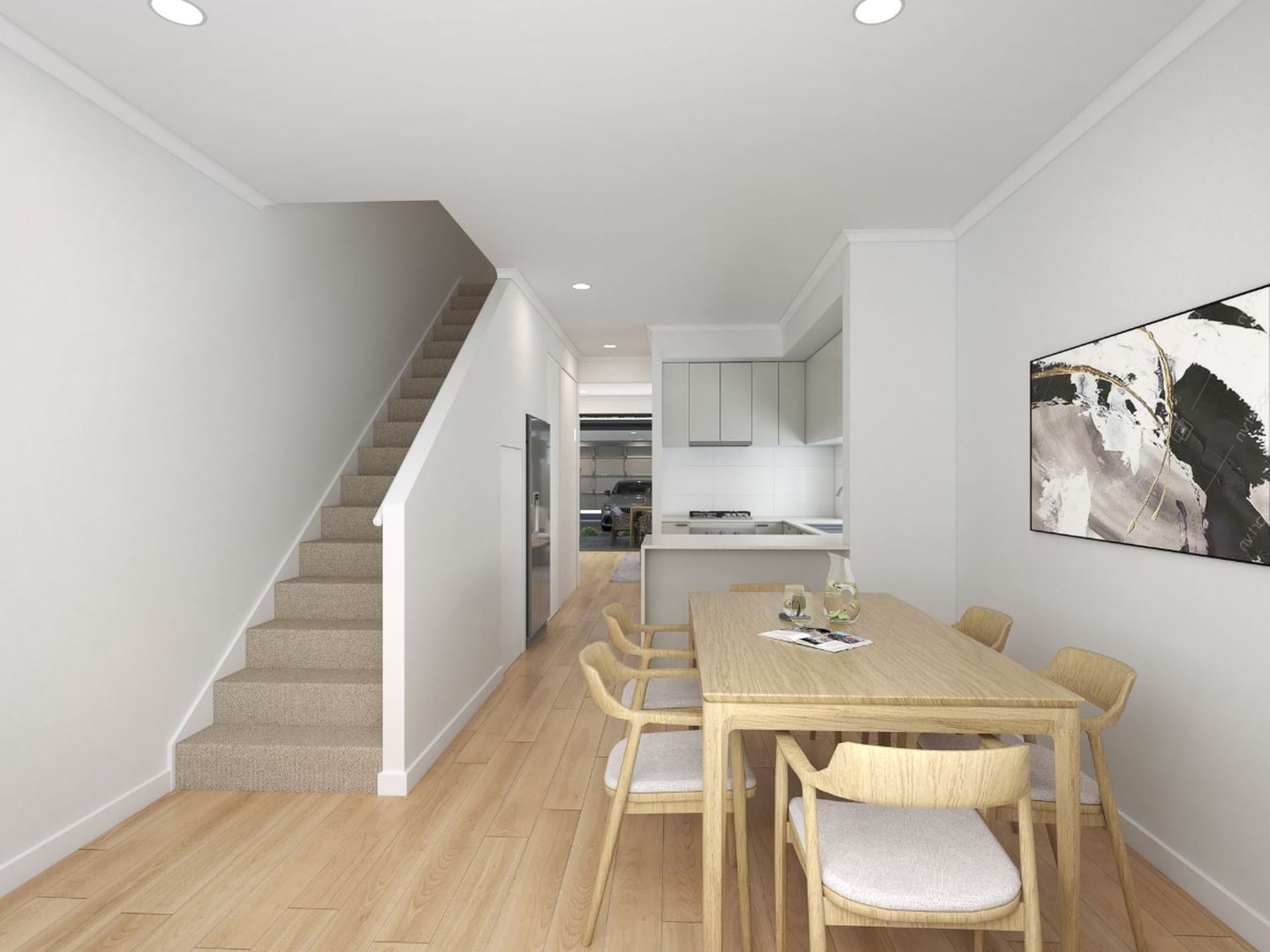 Step into the welcoming open-plan dining and kitchen area, including a breakfast bar, double sink, ample pantry space, and a gas cooktop. The ground floor also hosts a European laundry and a conveniently located water closet. Flowing seamlessly into a private living space, you can access your alfresco area through sliding doors - a perfect spot for hosting gatherings with friends and family. Plus, enjoy direct access to your secure carport from the alfresco area.