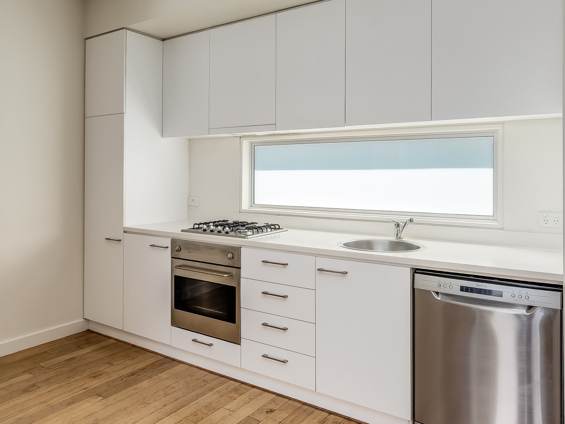 Located on the top floor, are two carpeted bedrooms, both nice and spacious with mirror door built in robes. The bathroom is also of a good size, with both a shower, toilet and separate bath. The second level living area enjoys a balcony and has flow through timber flooring, with the kitchen enjoying plenty of storage, Corian bench tops, stainless steel dishwasher and electric oven plus a gas cooktop, plenty of space to cook and create.