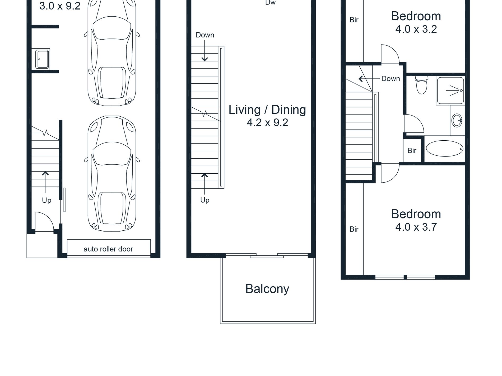 Located on the top floor, are two bedrooms, both nice and spacious and have mirror door built in robes. The bathroom is also of a good size, with both a shower, toilet and separate bath.