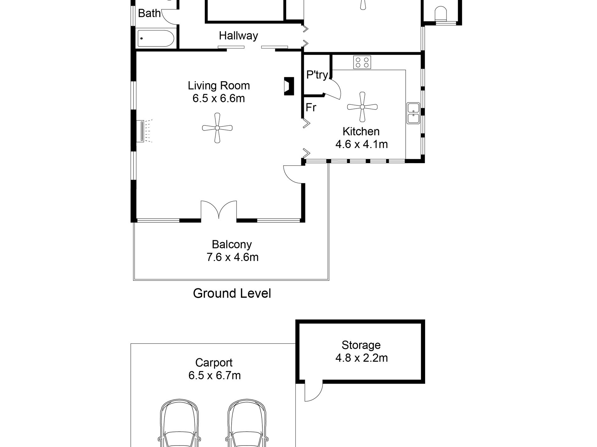 - Under croft 2-car carport + adjoining 4.8m x 2.2m storage