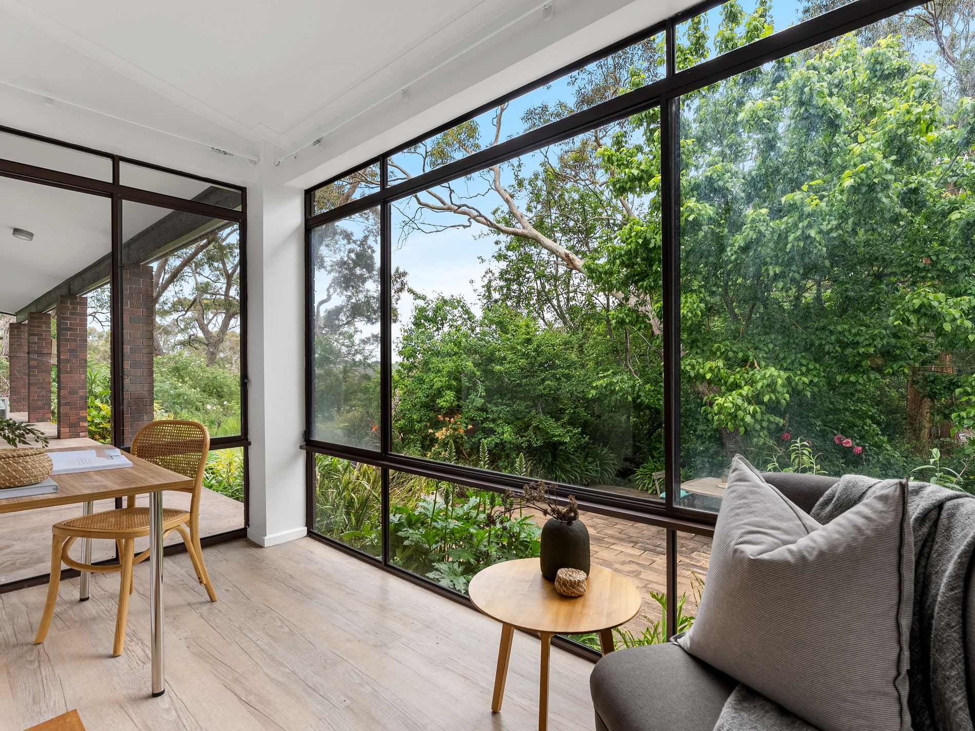 The house sits on approximately 3 acres of land, blending a mix of established garden and native bush land. There is a separate vegetable garden and a chook run. The bushland is home to visiting kangaroos and koalas, birds and even native orchids.