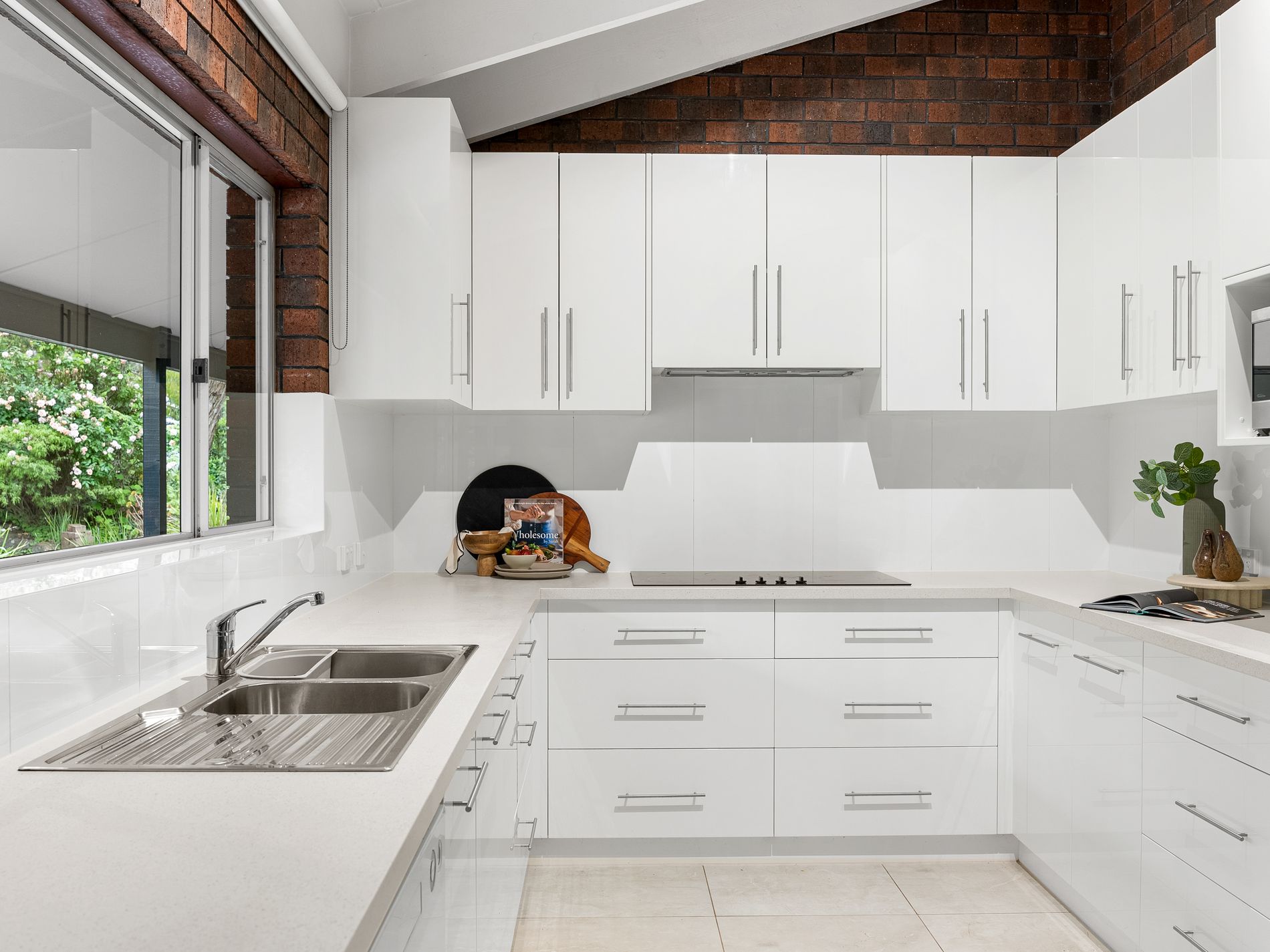 - Contemporary kitchen with abundant storage, Electrolux oven, Asko dishwasher and a walk in pantry.