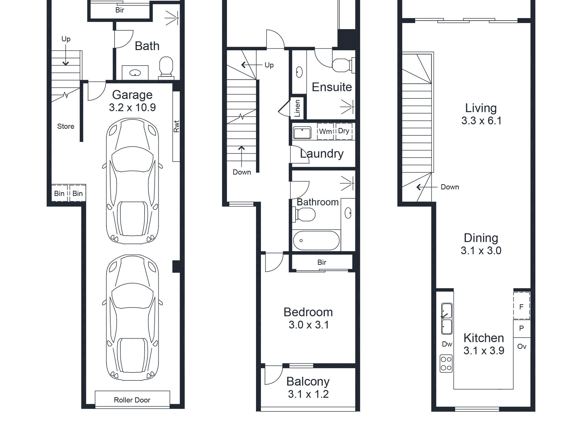 With separate internal entry via the rear lane two-car garage, the ground floor adds guest freedom, turning to the private bedroom/home office with built-in robes beside the first of three bathrooms, creating an instant guest welcome.
