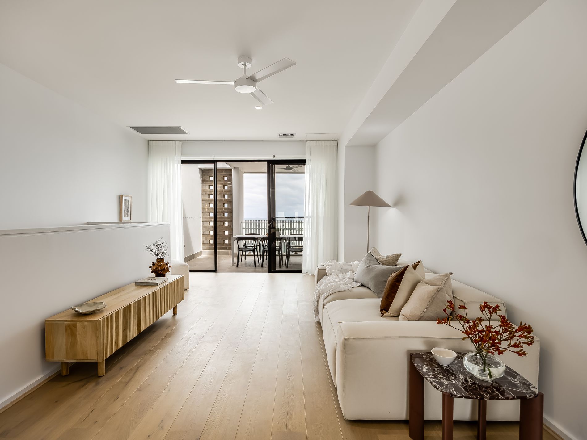 Up here, it’s all about the views: unhindered golden sunsets, even majestic cruise liners coming into dock - while the seamless open plan living joins its kitchen host; engineered floors unifying the entire high-spec design.