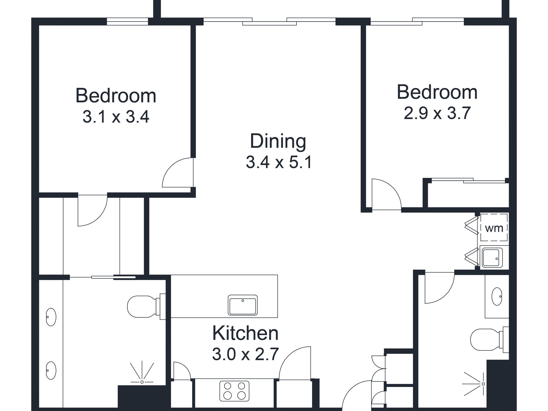 The generously sized bedrooms includes ample wardrobe space and direct access to a large private balcony. Stylish bathrooms completes the space with premium finishes and a smart, spacious layout.