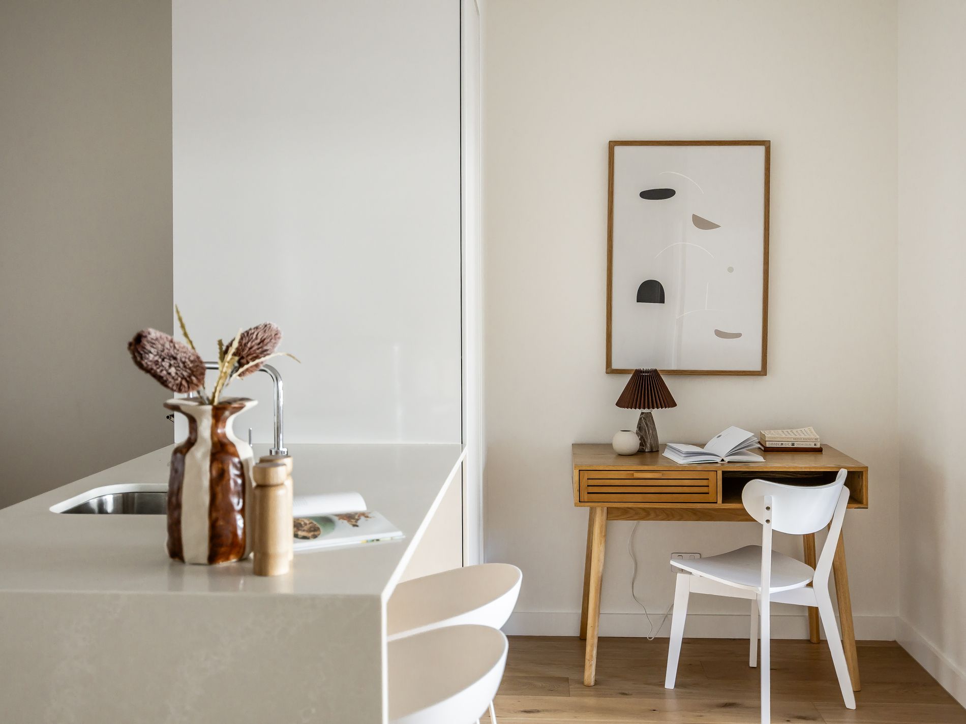 - Ensuite with floating cabinetry, full-height tiling & heated towel rail
