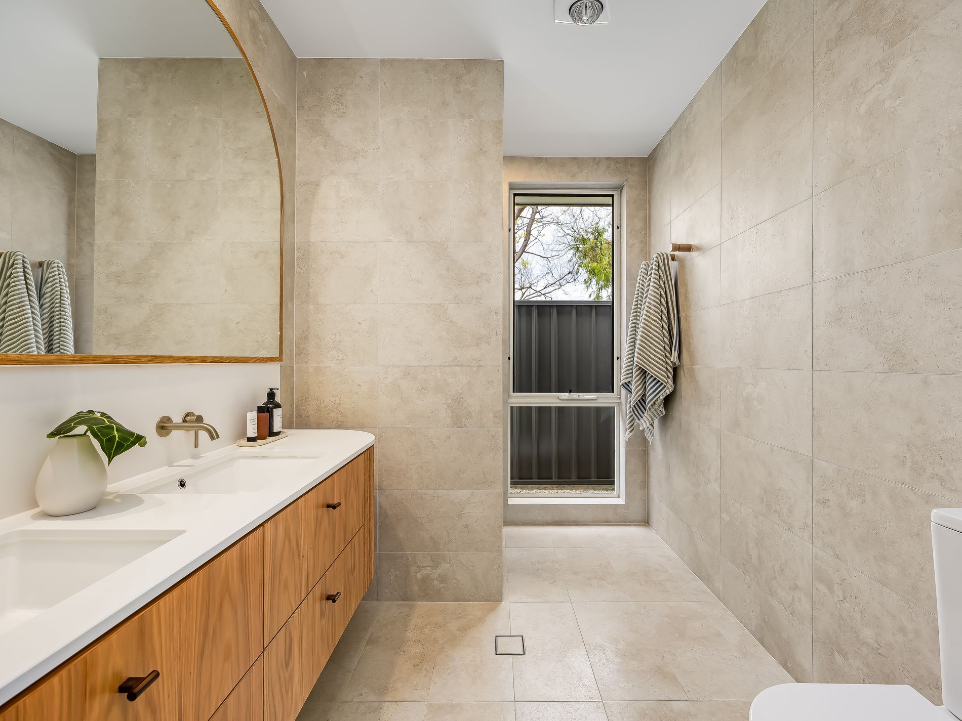 - Generous master suite with Bremworth 100% New Zealand wool carpet, WIR, and dual-vanity ensuite featuring stone benchtop, walk-in shower, and full-height tiling