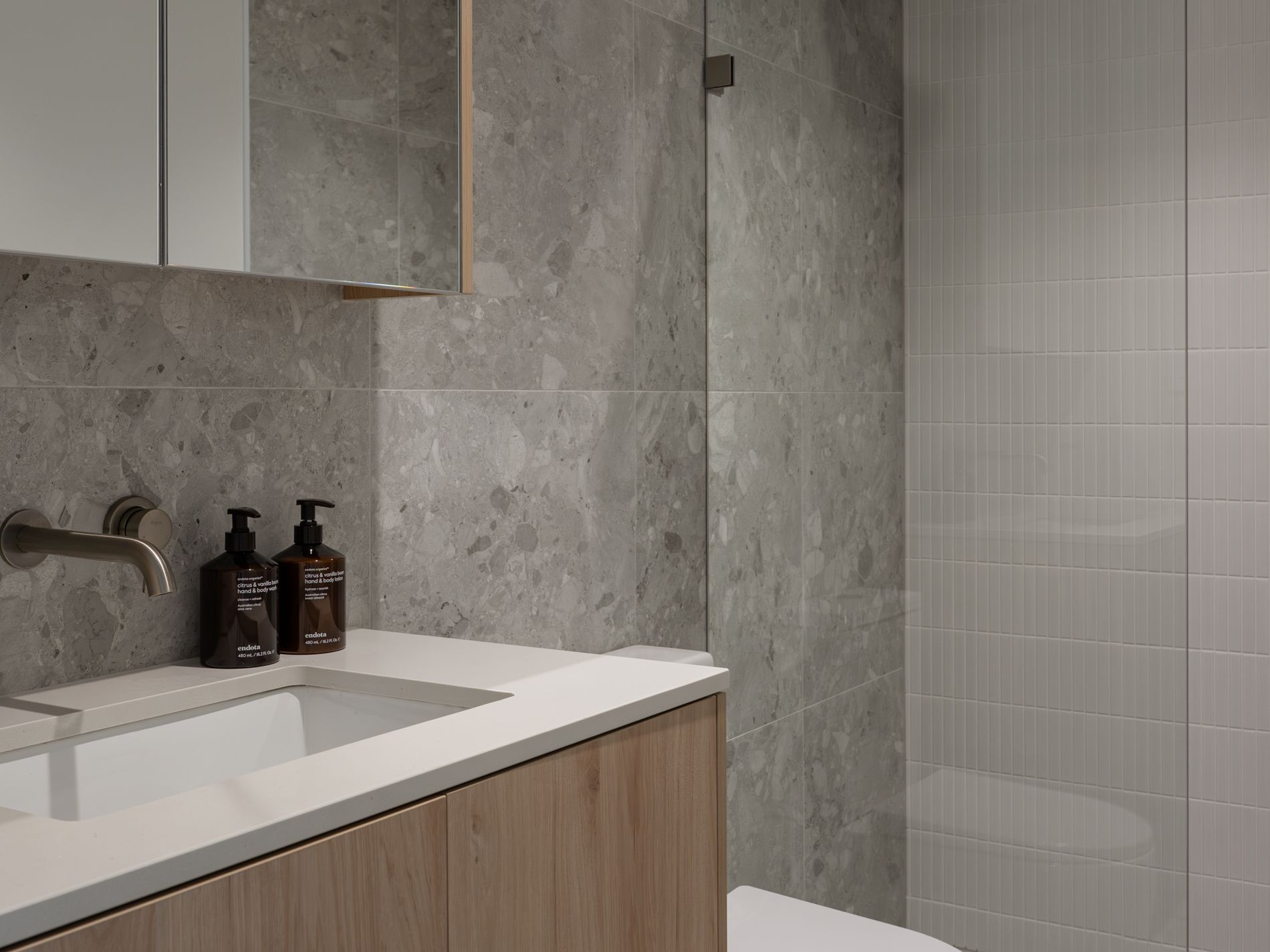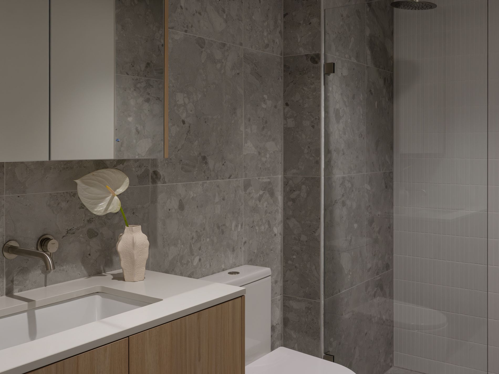 All three bedrooms are generously sized, featuring built-in wardrobes and stylish furnishings, while the master bedroom includes a private ensuite for added comfort. The second bathroom is equally well-appointed, offering both practicality and modern design.