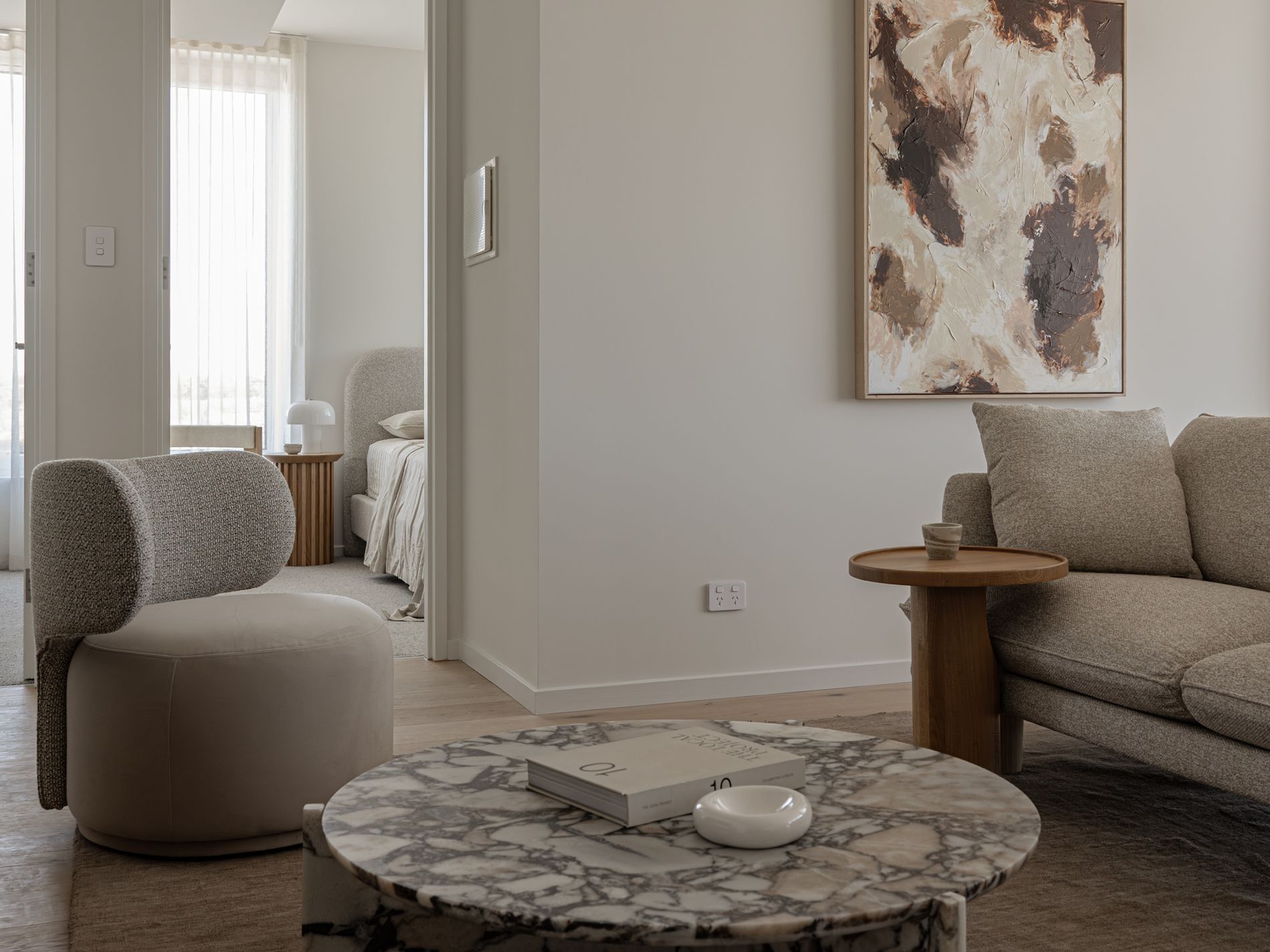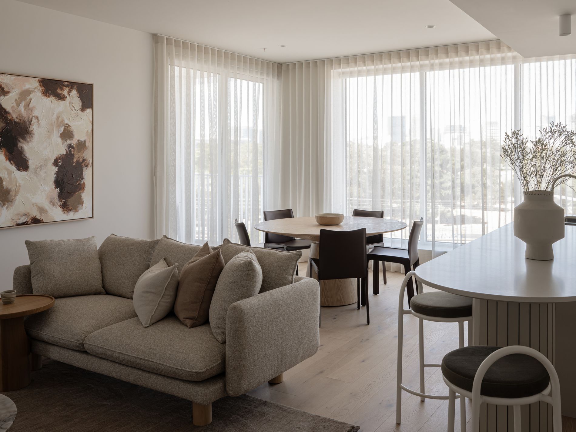 Step inside to discover a light-filled open plan living and dining area, complemented by contemporary furnishings and high-quality finishes throughout. The sleek kitchen is fully equipped with modern appliances, ample storage, and everything you need to move in and enjoy from day one.