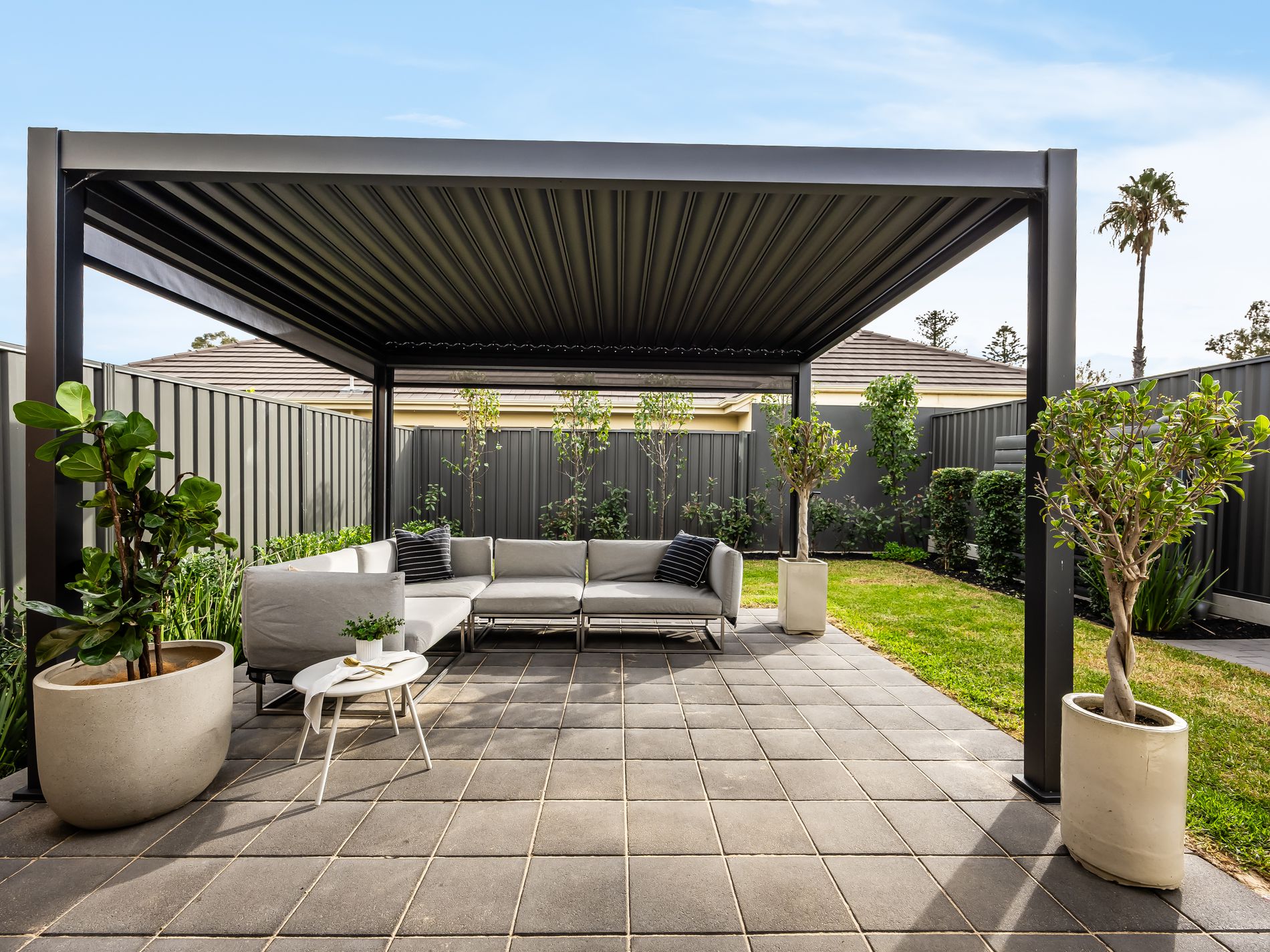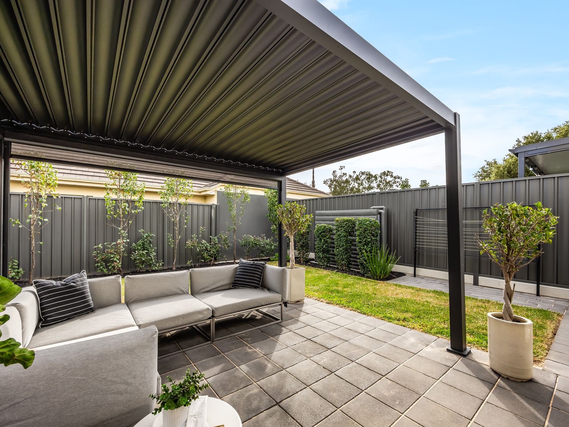 − Seamless flow to the all-weather alfresco area with zip-track blinds framed by manicured lawns, established greenery + soaked in north-facing sunshine