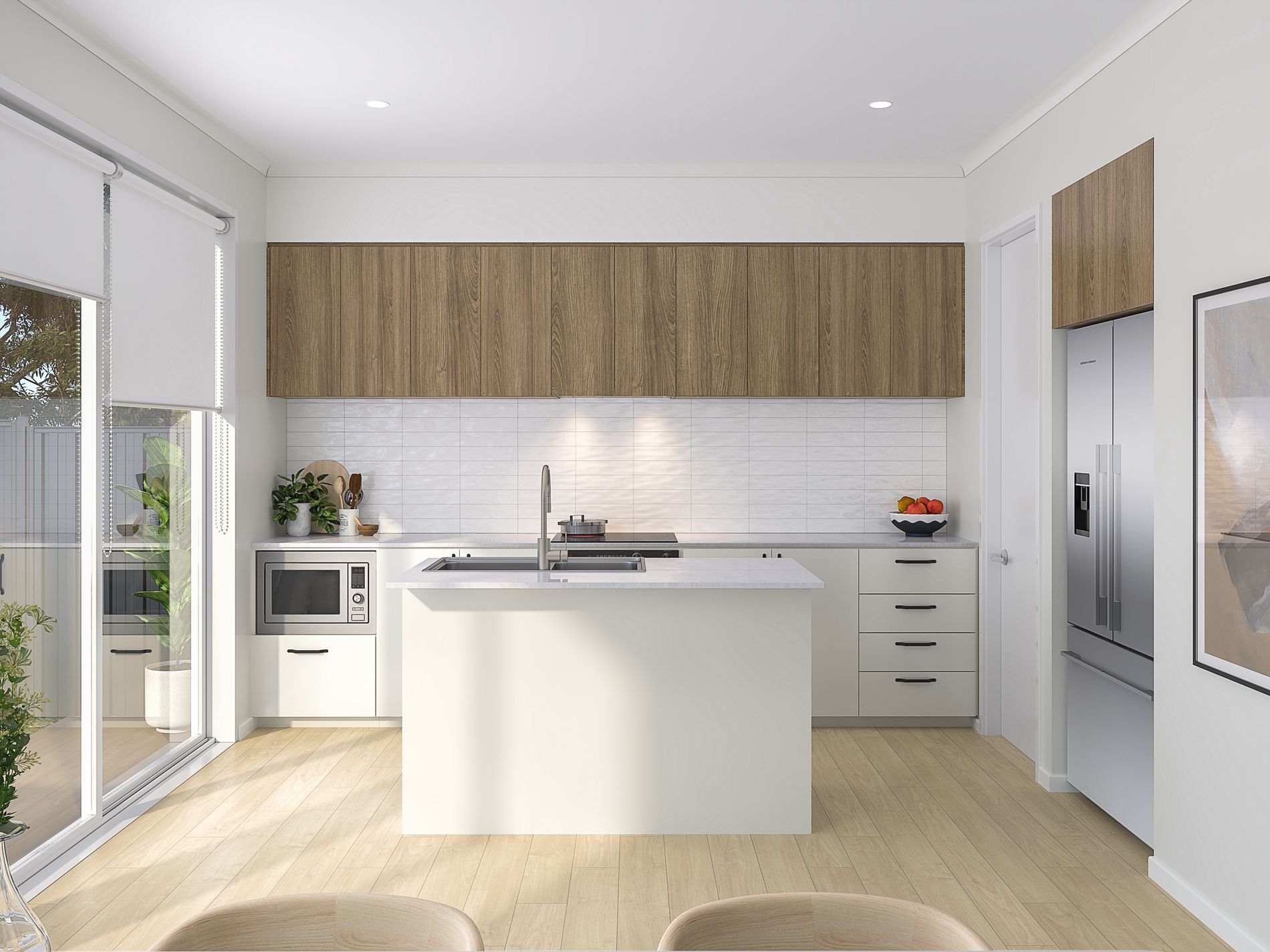 The Botanica is a stylish architecturally designed two-bedroom, one bathroom home that maximises space. Its open-plan living, dining, and kitchen area features an island bench, creating a bright and functional space for everyday life. A separate WC adds convenience, while the alfresco area with landscaping extends living outdoors.