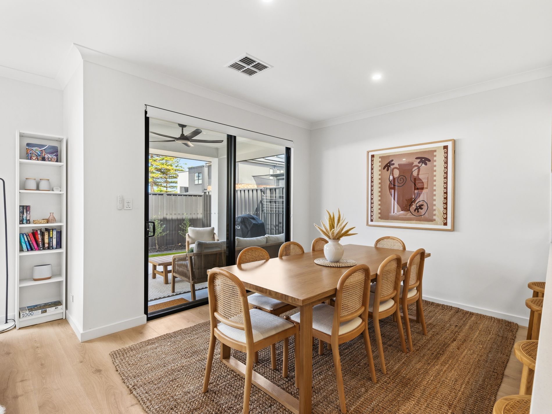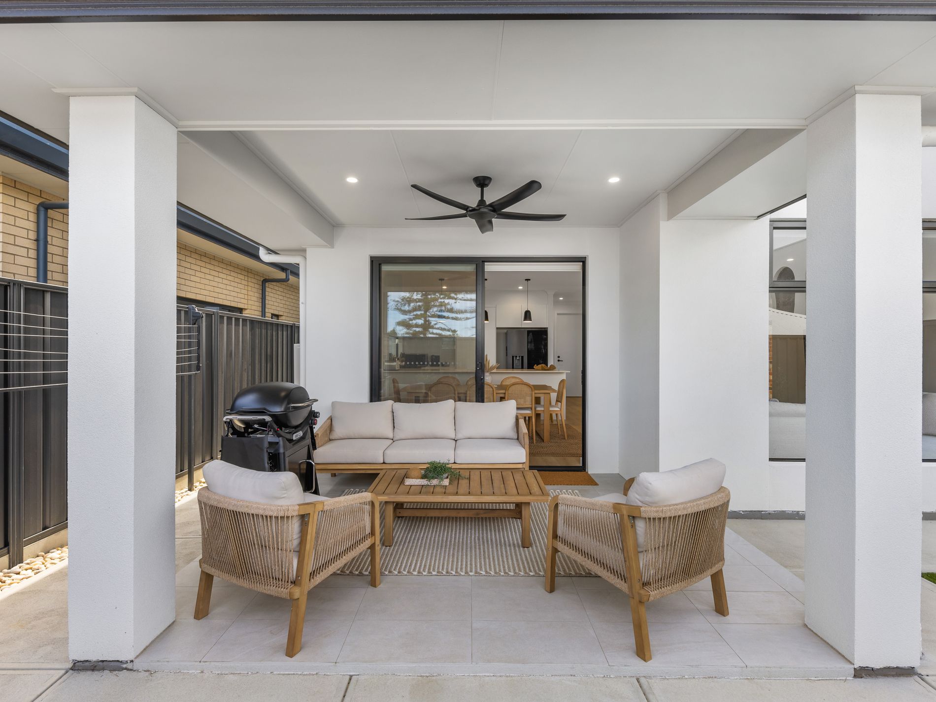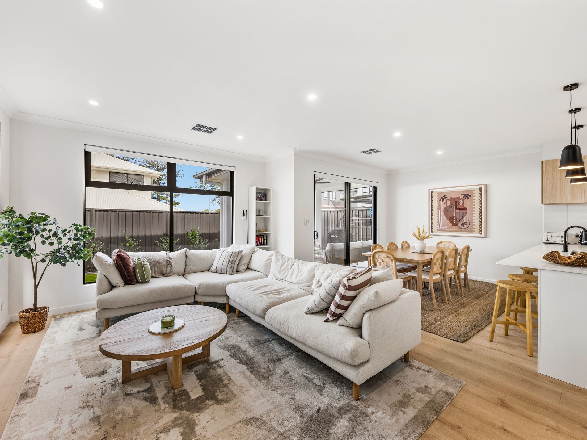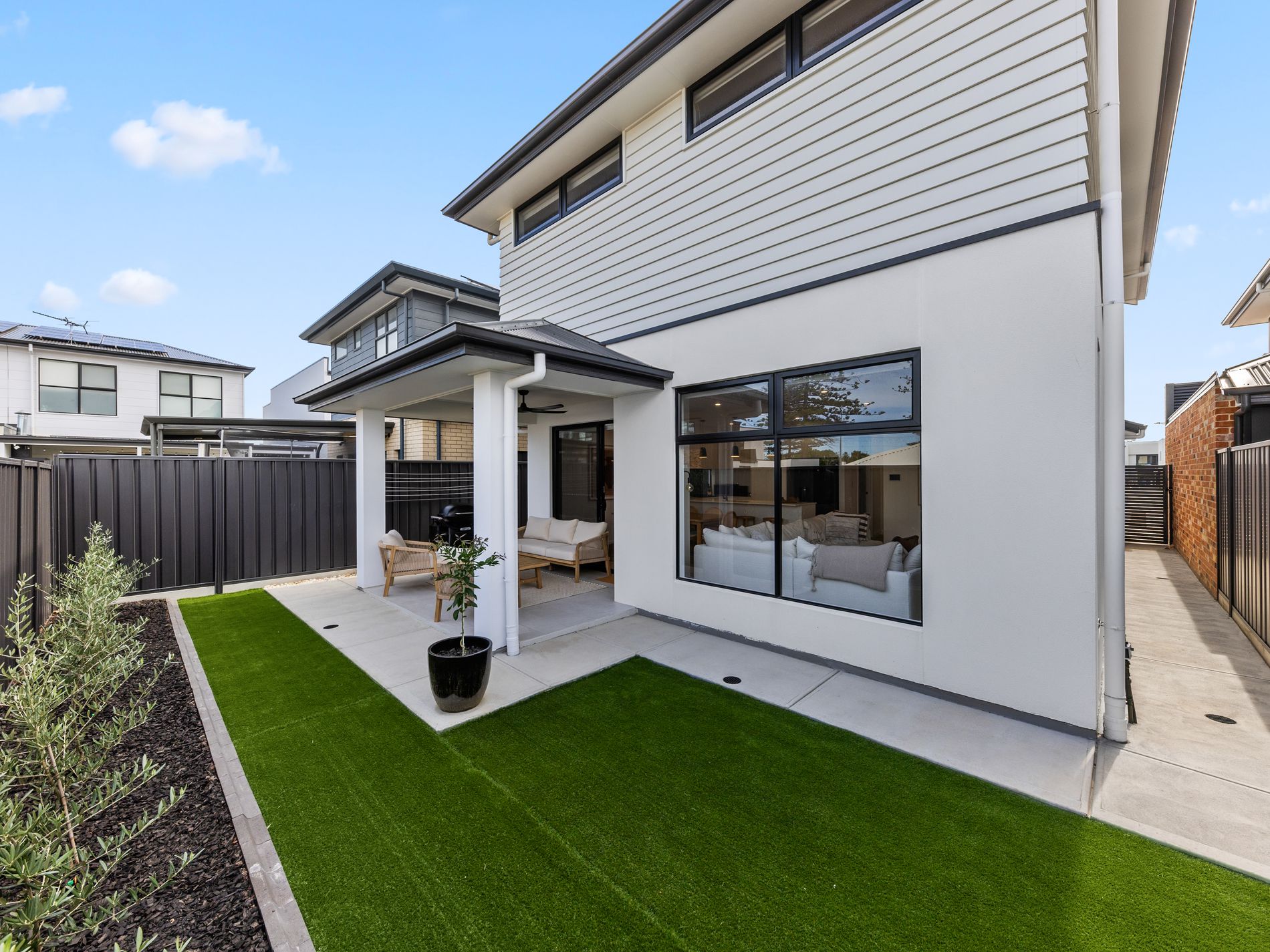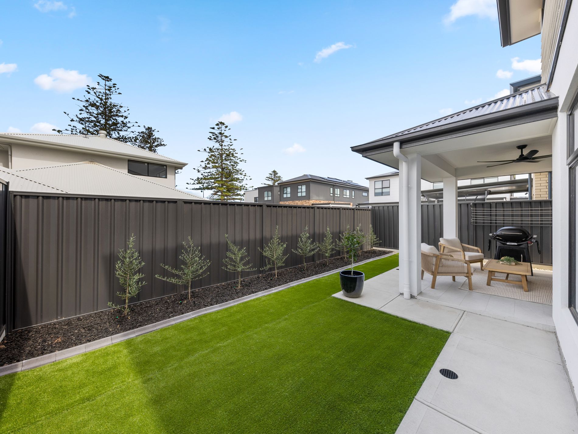 The open-plan living and dining area extends effortlessly to a stunning outdoor entertaining space, ideal for hosting family and friends while enjoying the coastal breeze. Artificial turf means you can enjoy your weekends without attending to the garden and auto reticulation to the garden beds.