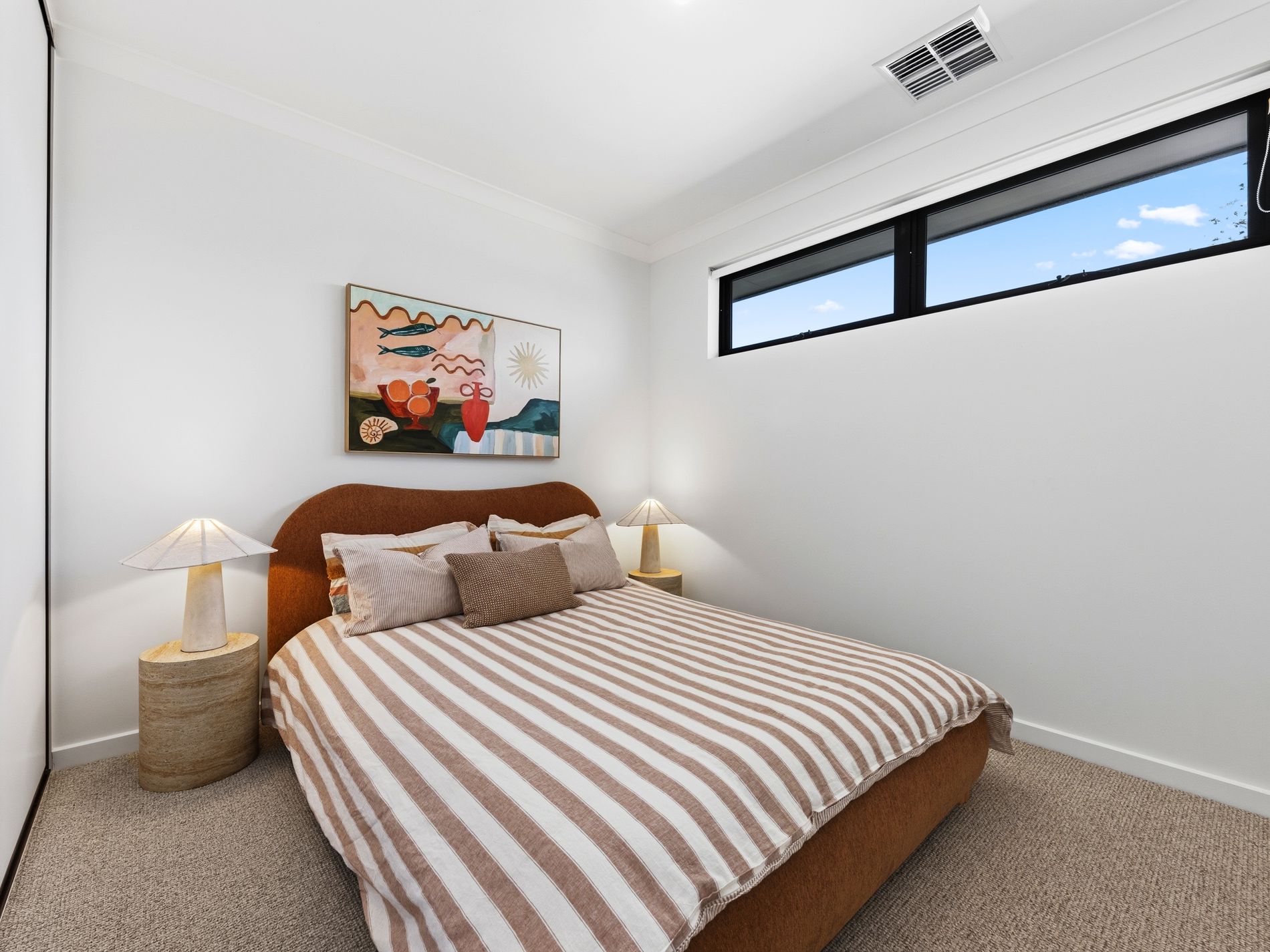 The bedrooms are beautifully appointed, offering comfort and tranquility, with a luxurious master suite featuring a walk-in robe and an elegant ensuite designed with premium fittings and a contemporary touch.