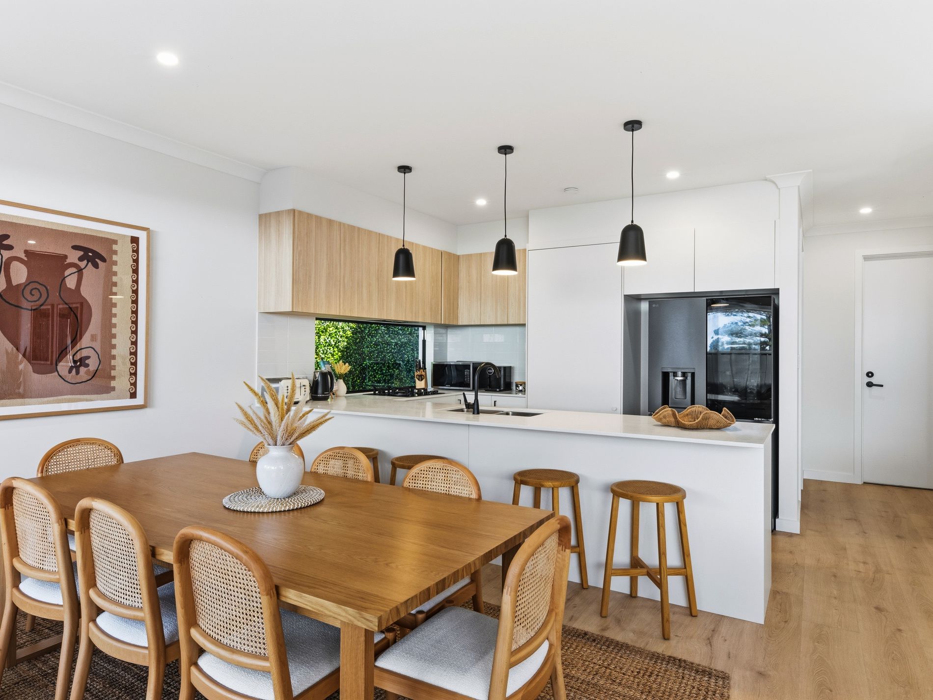 At the heart of the home lies a designer kitchen that will impress even the most discerning tenant, complete with stone benchtops, top-of-the-line appliances, custom cabinetry, and a generous island bench - perfect for entertaining or everyday living.